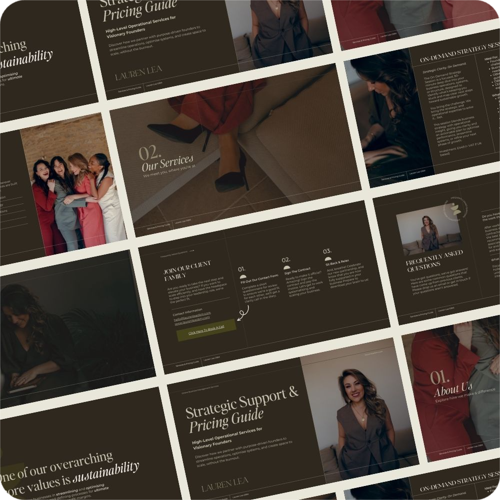 A focused, 90-minute deep dive into your business operations, systems, or structure - designed to diagnose the real blockers behind the overwhelm and create a clear, strategic roadmap for sustainable, profitable growth.